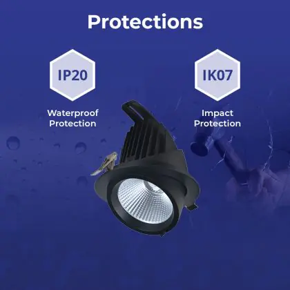 Ce downlight a unIP20 – Légère protection à la poussière (indice de protection aux intrusions de corps solides et liquides) Ainsi, le premier chiffre définit le niveau de protection contre les solides (0 = aucune protection / 6 = protection complète) et le second chiffre définit le niveau de protection contre l'intrusion d'eau (0 = aucune protection / 6 = protection contre la submersion). Votre luminaire peut être utilisé à l'extérieur à partir de l'IP 54.