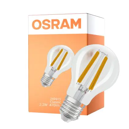 Description Osram Classic LED E27 Poire Filament Claire 2.2W 470lm - 840 Blanc Froid | Dimmable - Équivalent 40W