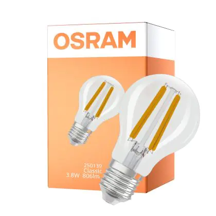 Description Osram Classic LED E27 Poire Filament Claire 3.8W 806lm Ultra Efficiency - 840 Blanc Froid | Équivalent 60W