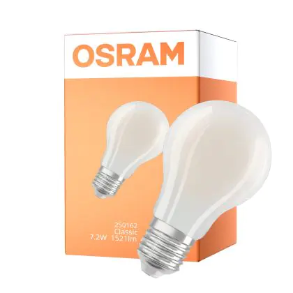 Grâce à la technologie LED moderne, l'ampoule LED E27 Osram 7.2 watts consomme particulièrement peu d'énergie, de sorte que sa puissance est nettement inférieure à celle des lampes à incandescence classiques. Néanmoins, le rendement lumineux, c'est-à-dire la valeur lumineuse, reste le même. Ainsi, il peut avoir une efficacité lumineuse particulièrement élevée de lm/W. Cela a un effet particulièrement positif sur votre facture d'électricité, car avec ce produit, vous avez besoin de beaucoup moins d'énergie pour obtenir la luminosité dont vous avez besoin.