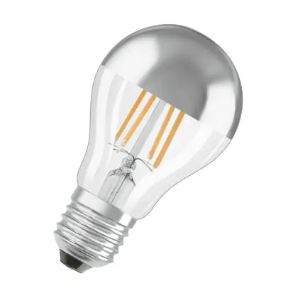Description Osram Classic LED E27 Poire Filament Miroir Argent 4W 400lm - 827 Blanc Très Chaud | Équivalent 35W