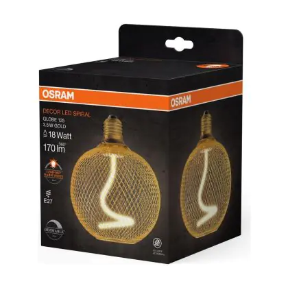 Description Osram Decor Spiral E27 Globe Filament Dorée 3.5W 170lm - 818 Blanc Très Chaud | Dimmable - Équivalent 15W