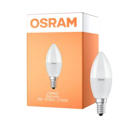 Cette ampoule à Led Retrofit de chez Osram consomme 6W et remplace des ampoules halogènes classiques de 40W. Vous allez donc faire des économies d’énergies et d’argent incroyables grâce à cette lampe Led. Elle diffuse une lumière d’un blanc très chaud appelé aussi 2700k. Cette lampe a une forme bougie B35, un culot à petit vis E14 et fonctionne sur 230 Volts. Vous allez aimer sa longue durée de vie de 25000 heures. Les ampoules halogènes traditionnelles R7s ne durent que 2000 heures.