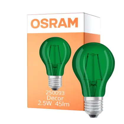 Description Osram LED Star Classic Decor E27 Poire Filament Dépolie 2.5W 45lm - Green |Équivalent 7W