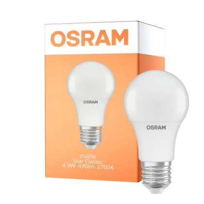 Grâce à la technologie LED moderne, l'ampoule LED E27 Osram 4.9 watts consomme particulièrement peu d'énergie, de sorte que sa puissance est nettement inférieure à celle des lampes à incandescence classiques. Néanmoins, le rendement lumineux, c'est-à-dire la valeur lumineuse, reste le même. Ainsi, il peut avoir une efficacité lumineuse particulièrement élevée de lm/W. Cela a un effet particulièrement positif sur votre facture d'électricité, car avec ce produit, vous avez besoin de beaucoup moins d'énergie pour obtenir la luminosité dont vous avez besoin.