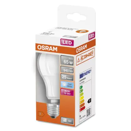L'ampoule LED E27 Osram ne convainc pas seulement par sa longue durée de vie de 20000, mais aussi par son efficacité lumineuse élevée de lm/W. Le prix d'achat comprend également une garantie globale de 4 ans.