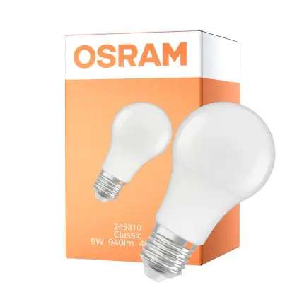 Grâce à la technologie LED moderne, l'ampoule LED E27 Osram 9 watts consomme particulièrement peu d'énergie, de sorte que sa puissance est nettement inférieure à celle des lampes à incandescence classiques. Néanmoins, le rendement lumineux, c'est-à-dire la valeur lumineuse, reste le même. Ainsi, il peut avoir une efficacité lumineuse particulièrement élevée de lm/W. Cela a un effet particulièrement positif sur votre facture d'électricité, car avec ce produit, vous avez besoin de beaucoup moins d'énergie pour obtenir la luminosité dont vous avez besoin.