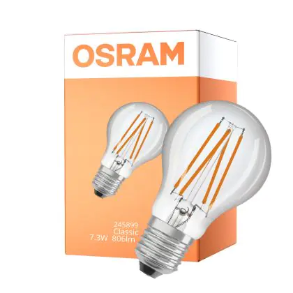 Description Osram Led Star Classic LED E27 Poire Filament Claire 7.3W 806lm - 827 Blanc Très Chaud | Avec Détecteur De Lumière