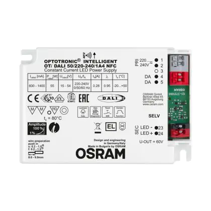 Commandez les Osram Optotronic Intelligent Dali NFC LED Driver 50/220-240/1A4 | Dimmable sur notre site et bénéficiez de nos nombreux avantages: des produits de la marque Osram, gage de grande qualité. Investissez dans le meilleur de l’éclairage.