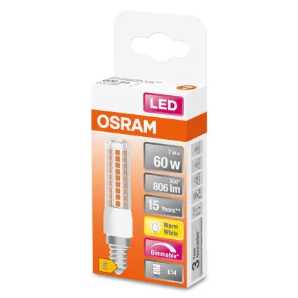 Description Osram Special T Slim LED E14 Claire 6.5W 806lm - 827 Blanc Très Chaud | Dimmable - Équivalent 60W