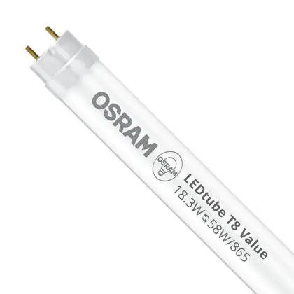 Description Osram Tube LED T8 SubstiTUBE Value (EM/Direct 230V) Standard Output 18.3W 2200lm - 865 Lumière Du Jour | 150cm - Équivalent 58W