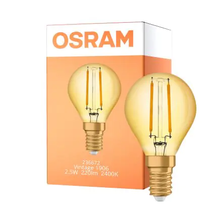 | Nom du fabricant | Vintage 1906 LED CL P FIL GOLD 22 non-dim 2,5W/824 E14 | |