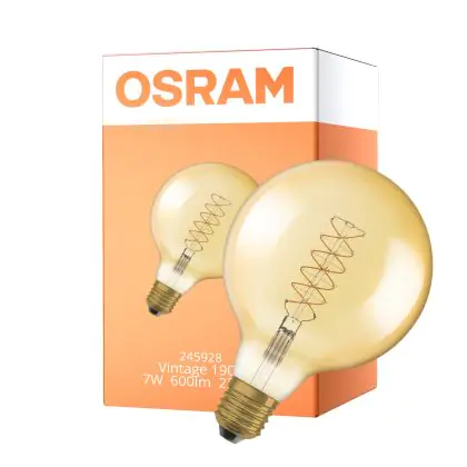 Description Osram Vintage 1906 LED E27 Globe Filament Gold 125mm 7W 600lm - 822 Extra Warm White | Dimmable