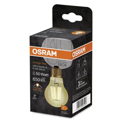 | Nom du fabricant | Vintage 1906 LED CL A FIL GOLD 50 non-dim 6,5W/824 E27 | |