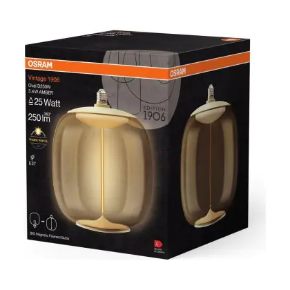 Description Osram Vintage 1906 LED E27 Special Filament Claire 3.4W 250lm - 827 Blanc Très Chaud | Équivalent 25W