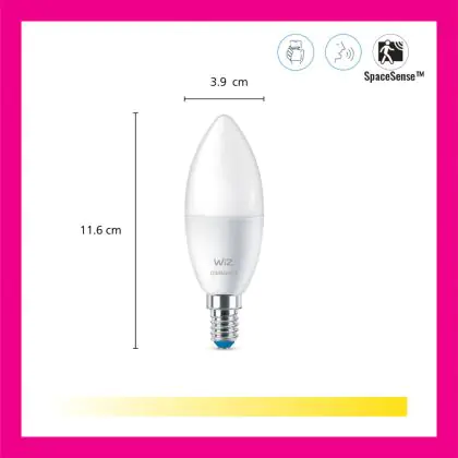 Pack duo 2x WiZ Smart LED E14 Bougie Dépolie 5W 470lm | Meilleur Rendu Des Couleurs - Dimmable - Équivalent 40W est le produit de remplacement parfait pour votre ancienne ampoule de 40W avec un culot E14 grâce à sa technologie LED. Passer à la LED vous offrira de nombreux avantages !