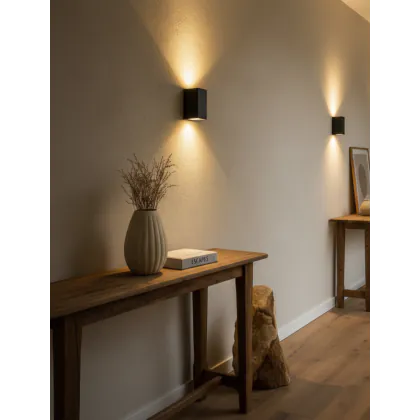 Investissez dans une solution à long terme, de heures en choisissant le Pack duo D'Lite Applique Murale Vrebos Aluminium Noir Up&Down| Convient pour 2x GU10.