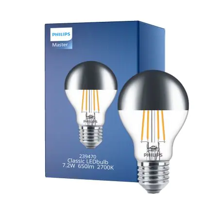 Description Philips Classic LED Ampoule E27 Poire Miroir 7.2W 650lm 650lm - 827 Blanc Très Chaud | Dimmable - Équivalent 60W