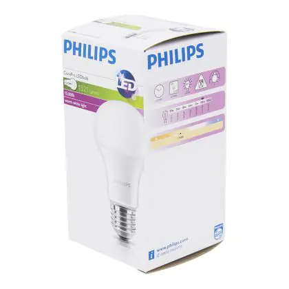 L'ampoule LED E27 philips n'a pas seulement une longue durée de vie de 15000 , elle convainc par une bonne efficacité lumineuse de lm/W ainsi que par un rendu des couleurs de . Grâce à son culot E27 très répandu, il est très polyvalent dans ses applications. Le prix comprend également une garantie globale de 2 ans.