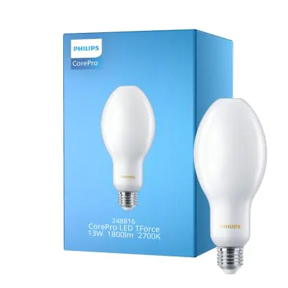 L'ampoule Philips CorePro LED TForce E27 13W 1800lm 330D - 827 Blanc Très Chaud a été spécialement conçue pour remplacer les lampes à décharge. Ce type de lampe est progressivement éliminé car ils utilisent trop d’énergie et contiennent du mercure. Ces ampoules LED HPL vous procureront le meilleur : vous économisez 75% sur votre dépense énergétique et ces lampes ne contiennent ni mercure ou autre composant toxique.