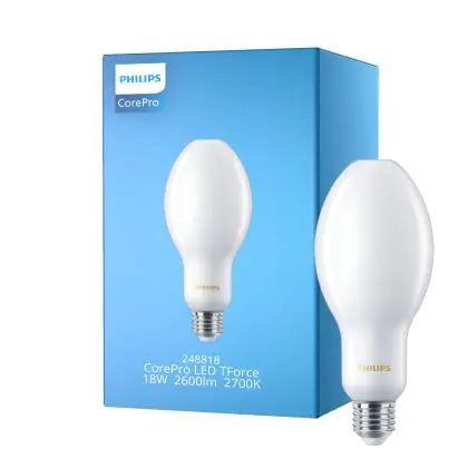 L'ampoule Philips CorePro LED TForce E27 18W 2600lm 330D - 827 Blanc Très Chaud a été spécialement conçue pour remplacer les lampes à décharge. Ce type de lampe est progressivement éliminé car ils utilisent trop d’énergie et contiennent du mercure. Ces ampoules LED HPL vous procureront le meilleur : vous économisez 75% sur votre dépense énergétique et ces lampes ne contiennent ni mercure ou autre composant toxique.