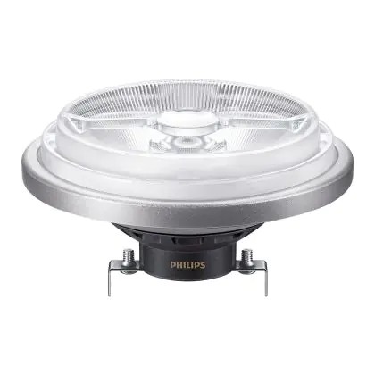 Philips MASTER LED Spot G53 AR111 10.8W 600lm 9D - 927 Blanc Très Chaud | Meilleur rendu des couleurs - Dimmable - Équivalent 50W est le remplacement parfait pour vos lampes halogènes traditionnelles G53 de 50W avec un code couleur 927 Blanc Très Chaud. Cette lampe possède un “réflecteur anti-éblouissement en aluminium” Spot d’un diamètre de 111 mm et les capuchons de lampes se situent à 53 mm les uns des autres. Les ampoules G53 sont plus sécuritaires dans les pièces humides que les lampes halogènes 230 Volts, parce qu’elles fonctionnent sur 12 Volts. Par conséquent, un transformateur est requis pour convertir la tension. Vous pouvez en trouver sous la rubrique "Accessoires" sur cette page de produits. Le transformateur dont vous avez besoin dépend du nombre d’ampoules que vous souhaitez connecter. Notre service clientèle peut vous aider à choisir le bon. Changez pour une LED vous offrira de nombreux avantages !