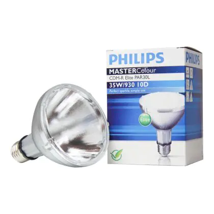 Les ampoules Philips CDM-R Elite sont des lampes à décharge compactes équipées de réflecteurs offrant un très bon maintien du flux de la première à la dernière utilisation. Les Philips CDM-R Elite 35W 930 PAR30L 10D offrent une lumière d’une excellente qualité qui met en valeur les objets éclairés.