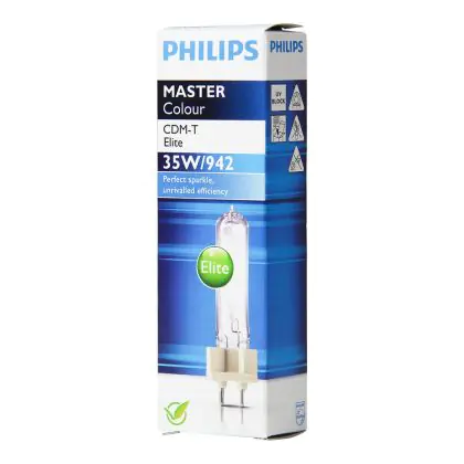 Le Philips MasterColour CDM-T Elite est une lampe à décharge équipée du culot G12. Cette lampe à halogénure métallique de 35W diffuse une lumière étincelante avec un rendu de couleurs élevé. Ces lampes à décharge compactes sont adaptées pour un éclairage général ou d’accentuation dans les magasins, les vitrines ou encore les galeries commerciales. Il est nécessaire d’utiliser un ballast électronique ou conventionnel afin de les faire fonctionner.