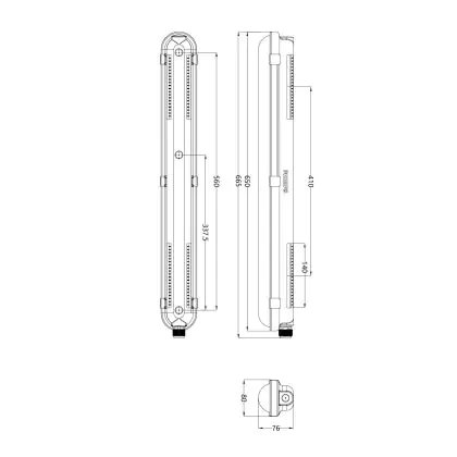 Cette réglette LED d'une longueur de 665 mm est l'alternative durable et économe en énergie à un luminaire fluorescent de même format et avec deux tubes fluorescents de 2x18 Watt.