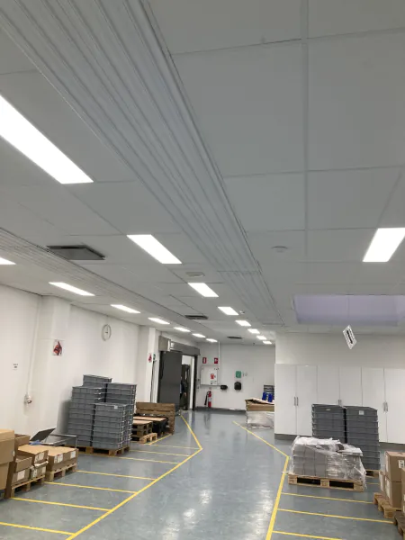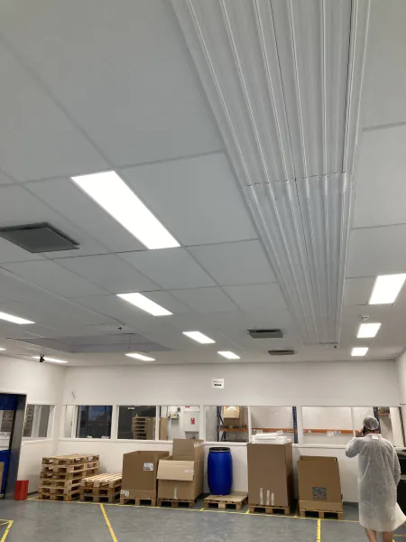 Comme le client souhaitait un éclairage dimmable, nous avons décidé ensemble que le produit le plus adapté serait des panneaux graduables DALI. Le système DALI est équipé d’un système de contrôle de l'intensité d'éclairage. De plus, il permet de relier ou d'isoler plusieurs luminaires et de sauvegarder les réglages correspondants. En bref, vous pouvez contrôler l'éclairage de tout un bâtiment sans avoir à vous déplacer et à actionner tous les interrupteurs. Outre les panneaux LED à intensité variable installés dans la cantine, le laboratoire, les bureaux et l’espace de production, GOSH a également fait installer un grand nombre de tubes LED de Noxion et Philips dans son entrepôt.
