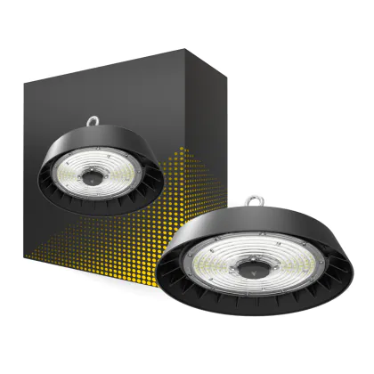 Beschrijving Bright Choice LED Highbay Staal Zwart 150W 25500lm 90D - 757 Koel Wit | IP65 - met Bewegings- en Lichtsensor