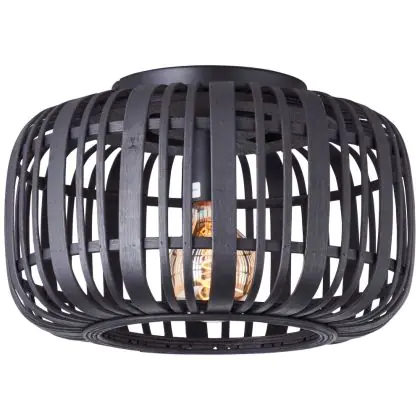 Beschrijving Brilliant Houtrow Plafondlamp Metaal Bamboe Zwart Hout | 320mm - Geschikt voor 1x E27