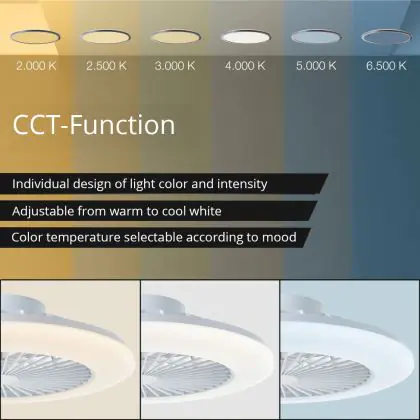 Beschrijving Brilliant Salerno Plafondventilator Kunststof Metaal Wit 36W 4700lm - 830-865 CCT+RGB | 485mm - Afstandsbediening Dimbaar