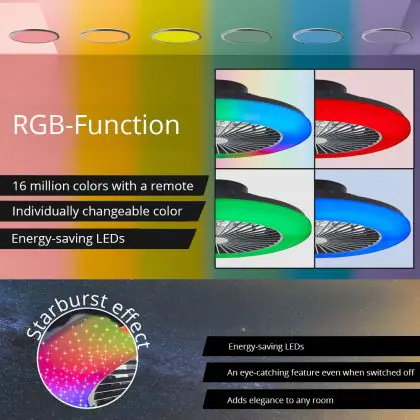 Beschrijving Brilliant Salerno Plafondventilator Kunststof Metaal Zwart 36W 4700lm - 830-865 CCT+RGB | 485mm - Afstandsbediening Dimbaar