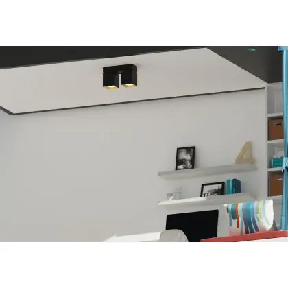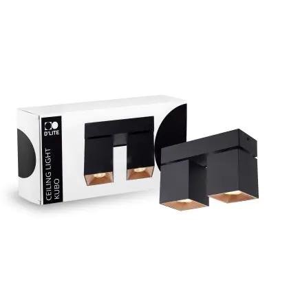 Beschrijving D'Lite Plafondlamp Kubo Aluminium Zwart Kantelbaar en Draaibaar | IP20 - Geschikt voor 2x GU10