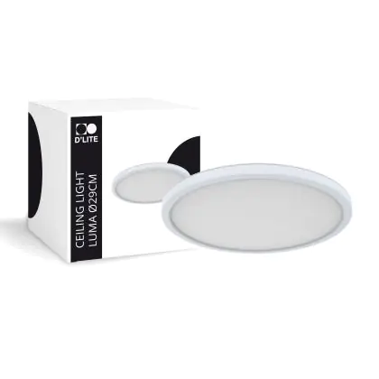 Beschrijving D'Lite Plafondlamp Luma Wit 18W 1700lm - 827 Zeer Warm Wit | IP44 - 29cm