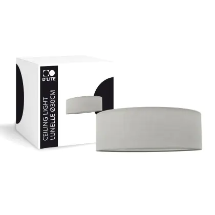 Beschrijving D'Lite Plafondlamp Lunelle 30cm Textiel Grijs | Geschikt Voor 2x E27