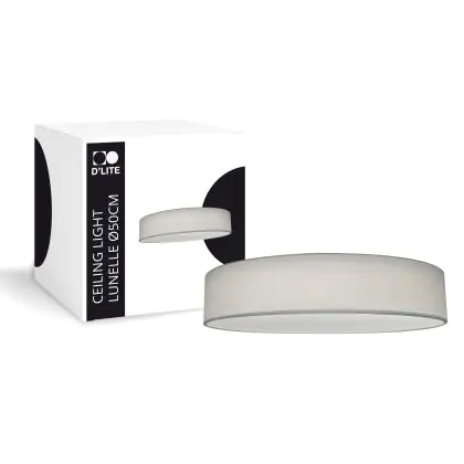 Beschrijving D'Lite Plafondlamp Lunelle 50cm Textiel Grijs | Geschikt Voor 3x E27