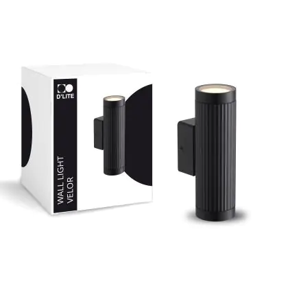Beschrijving D'Lite Wandlamp Velor Aluminium Zwart Up & Down | IP54 - Geschikt voor 2x GU10