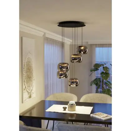 Beschrijving Eglo Hanglamp Hortunas Staal Zwart 5.8W 690lm - 830 Warm Wit | IP20 - Dimbaar