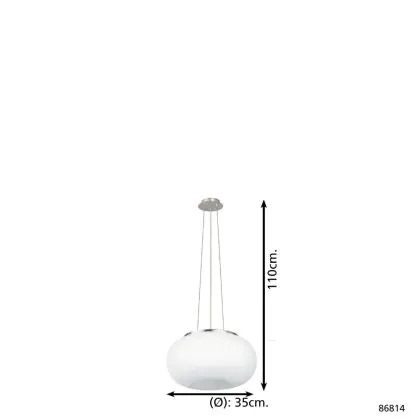 Beschrijving Eglo Pendelarmatuur Optica Staal Satijn Nikkel | Geschikt voor 2x E27