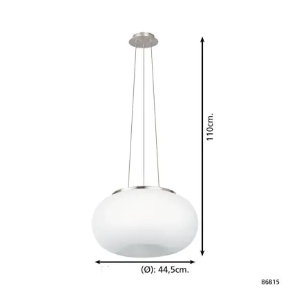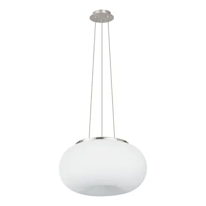 Beschrijving Eglo Pendelarmatuur Optica Staal Satijn Nikkel | Geschikt voor 2x E27
