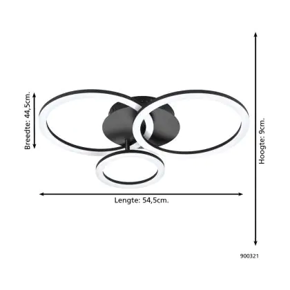 Beschrijving Eglo Plafondlamp Parrapos-Z Staal Zwart 11W 4300lm - 830-865 Afstembaar Wit | IP20 - Zigbee Dimbaar