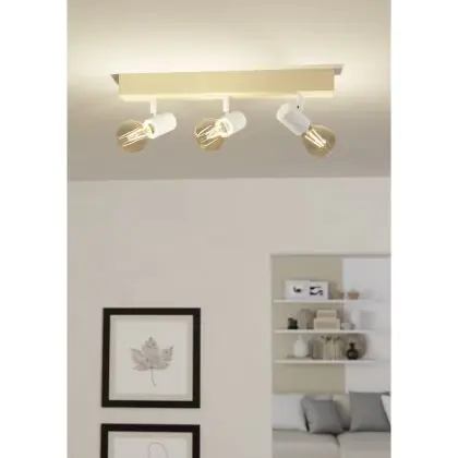 Beschrijving Eglo Plafondlamp Townshend 3 Hout Staal Wit | IP20 - Geschikt voor 3x E27