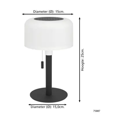 Beschrijving Eglo Tafellamp Montapalma Staal Zwart 2W 190lm - 830 Warm Wit | IP54 - Dimbaar - USB-C