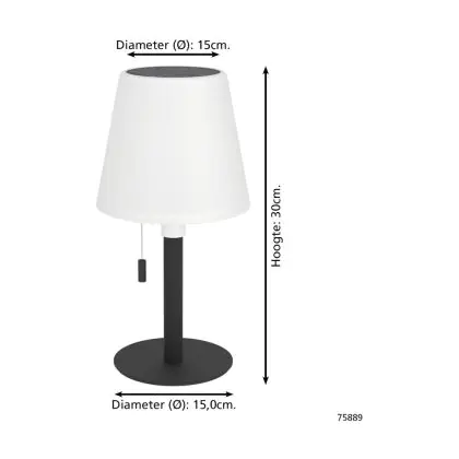 Beschrijving Eglo Tafellamp Montapalma Staal Zwart 2W 190lm - 830 Warm Wit | IP54 - Dimbaar - USB-C