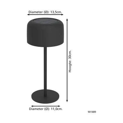Beschrijving Eglo Tafellamp Roccanova Staal Zwart 2W 270lm - 830 Warm Wit | IP44 - Touch Dimbaar - USB-C