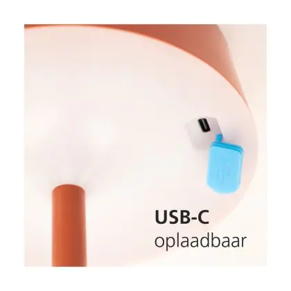 Beschrijving Eglo Tafellamp Simeri Staal Oranje 3W 250lm - 830-860 Afstembaar Wit | IP44 - Touch Dimbaar - USB-C