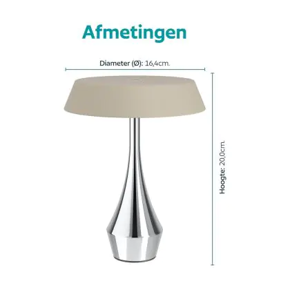Beschrijving Eglo Tafellamp Turcio Staal Chroom 5W 310lm - 825-830-840 CCT | IP44 - Touch Dimbaar - USB-C