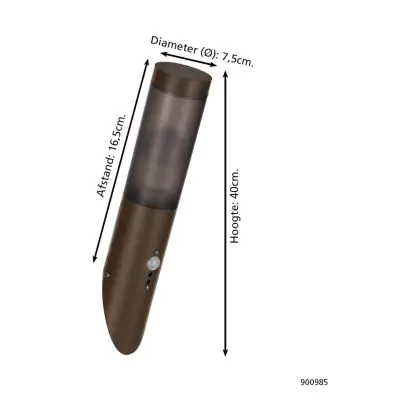 Beschrijving Eglo Wandlamp Helsinki Roestvrij Staal Bruin | IP55 - Geschikt voor 1x E27 - Bewegingssensor